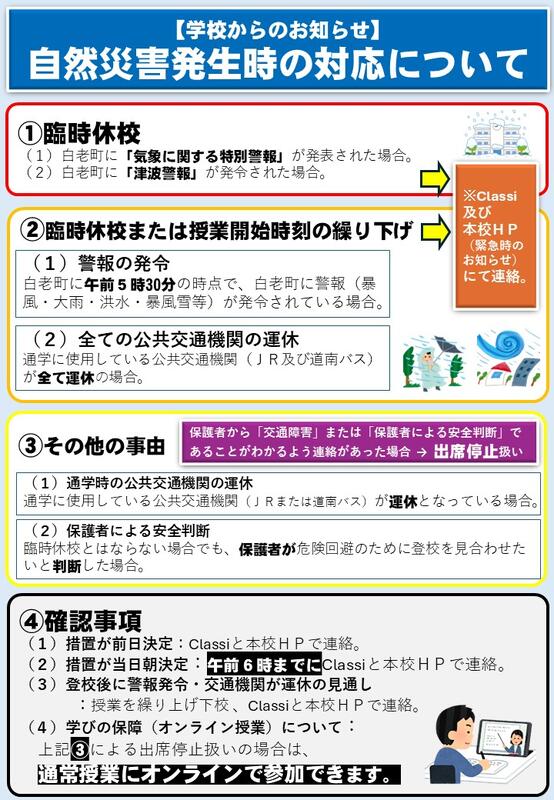 白東速報学校紹介 学校生活 部局活動 事務室よりアコロコタン(地学協働・総合的な探究の時間)入学者選抜