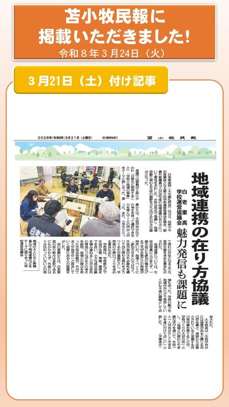 学校運営協議会の様子が苫小牧民報に報道いただきました!!